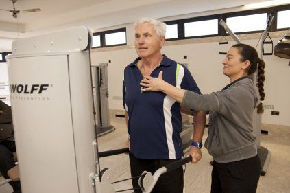 Zu unseren Kursen und individuellem Muskelaufbautraining bieten wir zusätzlich Training im Dr. Wolff Rückentherapie-Center, Krankengymnastik am Gerät und Vibrationstraining an.